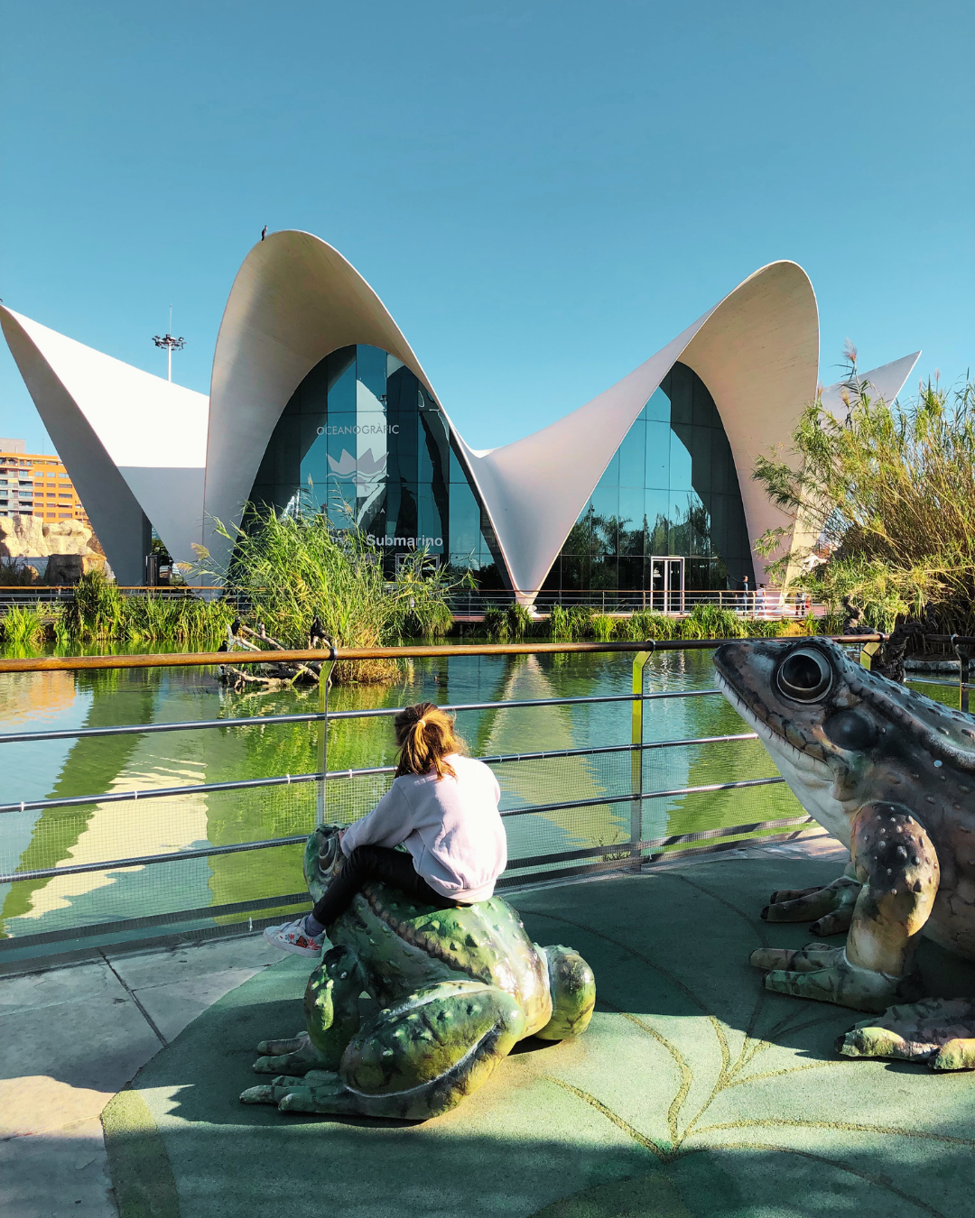 È il simbolo che più di tutti rappresenta Valencia, opera dell’architetto Santiago Calatrava e si trova all’estremità inferiore del Jardin del Turia. Questo complesso di edifici dall’architettura moderna che richiamano elementi della natura è di una bellezza indescrivibile soprattutto durante le giornate di sole come quelle che abbiamo avuto la fortuna di trovare. Arrivando da Nord attraverso il Jardin de Turia è possibile godersi la spettacolarità di tutti gli edifici che la compongono: il Palau de les Art, l’Hemisferic, l’Umbracle, il Museu de les Cienciès Principe Felipe, il Caixa Forum Agora e l’Oceanogràfic. Noi abbiamo scelto di visitare in due giorni distinti solo l’Oceanogràfic e il Museu de les Cienciès Principe Felipe – i due che ci sembravano più adeguati all’età dei nostri bambini – e di fare una passeggiata nell’Umbracle.