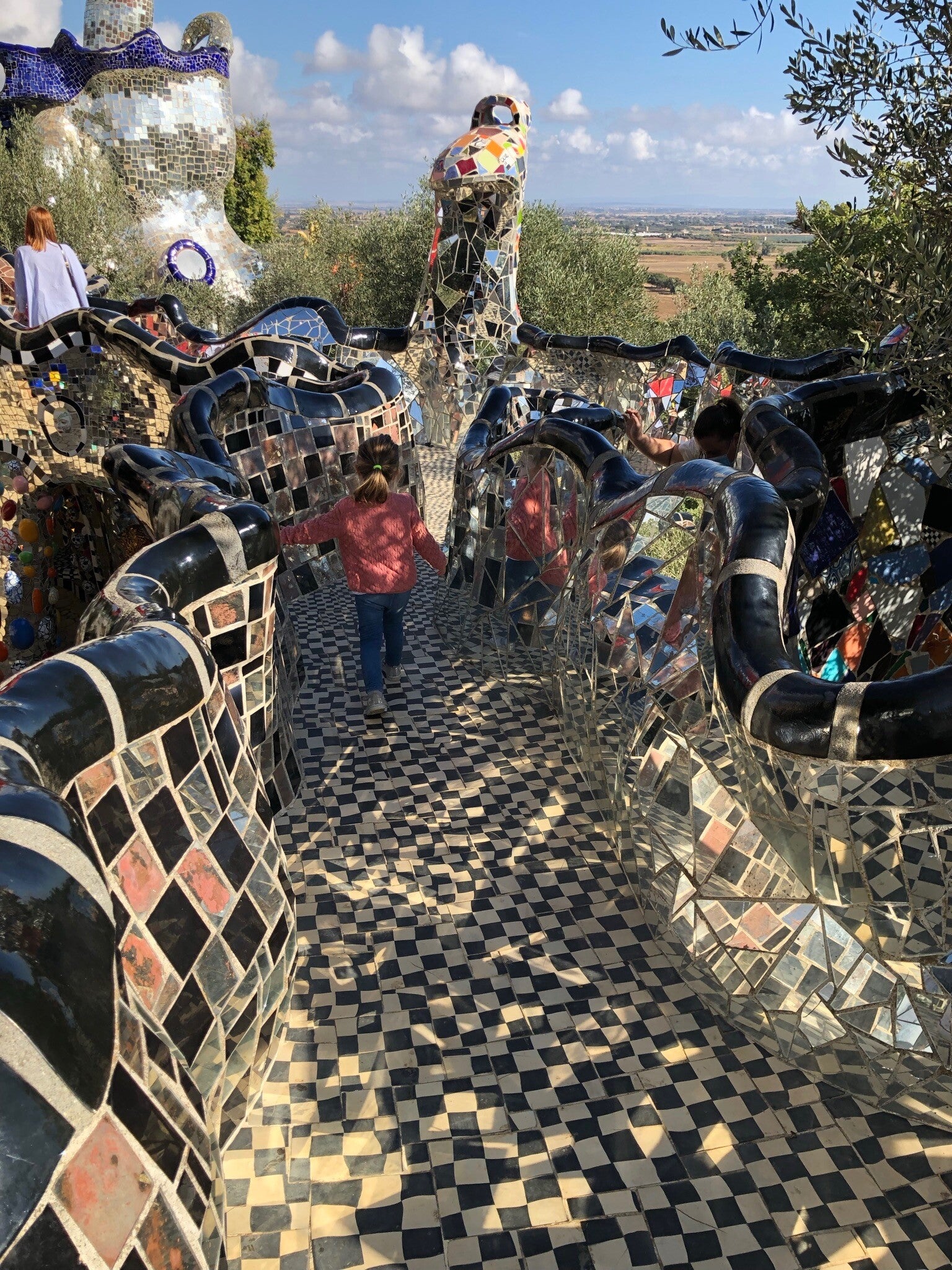 A Capalbio, in provincia di Grosseto, immerso nella campagna sorge quello che l’artista Niki de Saint Phalle definisce il suo piccolo angolo di paradiso. Ispirato al Parc Guell del suo maestro Gaudi, qui troverete 22 sculture che rappresentano la simbologia delle carte dei Tarocchi. Specchi e ceramiche colorate ricoprono le sculture, le panchine e le colonne del giardino. Dalla piazzetta centrale, in cui la fontana azzurra (La Papessa) è la protagonista, si diramano stradine che, attraverso pensieri, citazioni, disegni e messaggi dell’artista (guardate bene quindi ai vostri piedi) conducono ai protagonisti di questo giardino: colorati, buffi, a volte inquietanti. Fate spazio alla fantasia, sì perché è proprio questo uno degli obiettivi di Niki. Infatti nel giardino non sono previste volutamente visite guidate, in questo modo il visitatore sarà libero di interpretare le sculture secondo il proprio gusto e sensibilità! Ai bambini sembrerà di essere in una Città magica fatta di colori, riflessi, tesori nascosti da scoprire. Seguite le forme sinuose del giardino, percorrete le sue vie colorate, nascondetevi dietro le colonne del suo cortile interno, scoprite il cuore fatto di specchi “dell’Imperatrice”, lasciatevi trasportare nel giardino della gioia di Niki.